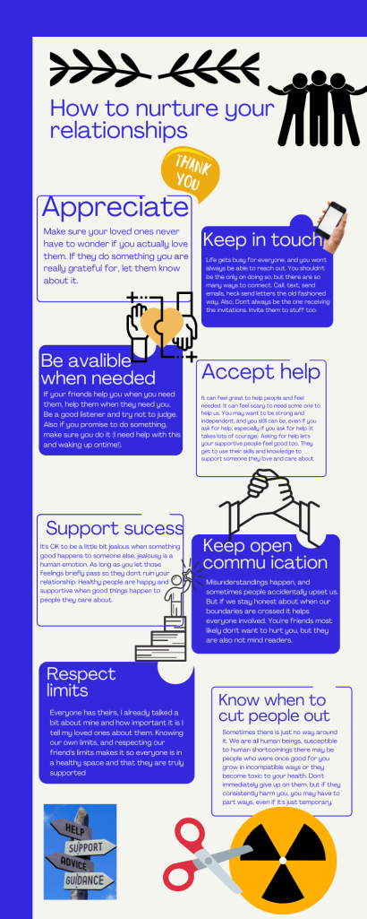 Ok, so let’s say you already feel like you have the strongest support system you could possibly have, and you feel there is nothing else you can do to make it any better. After reading this post, or maybe you were already wondering, you may be wondering how you can ensure your relationships stay healthy. This is an important part in being supported in your time of need, nurturing your relationships. As I have already said, we all need support and comfort sometimes.