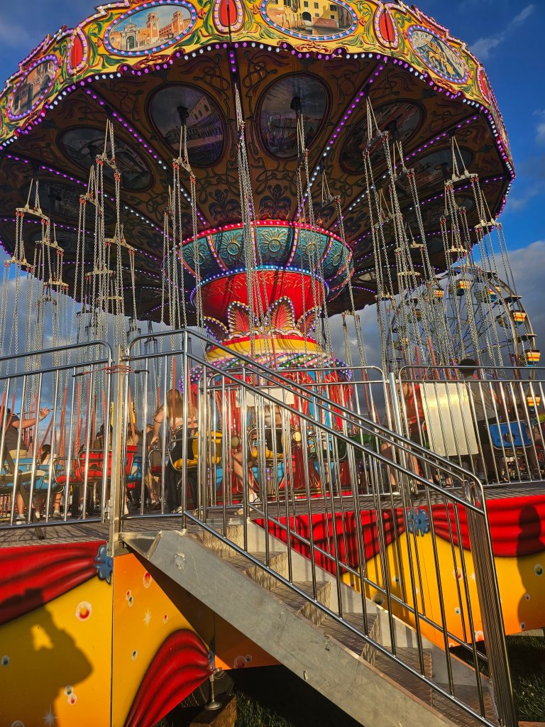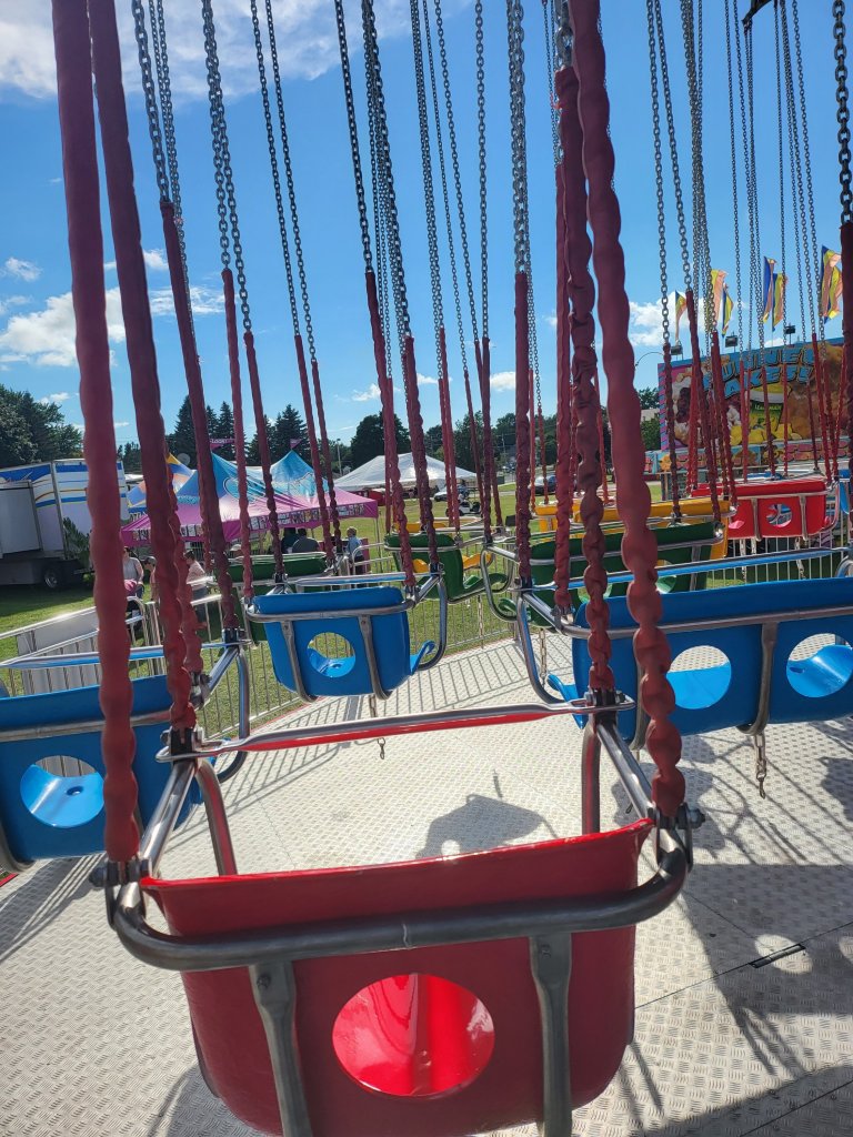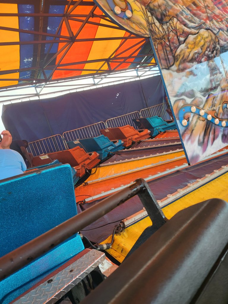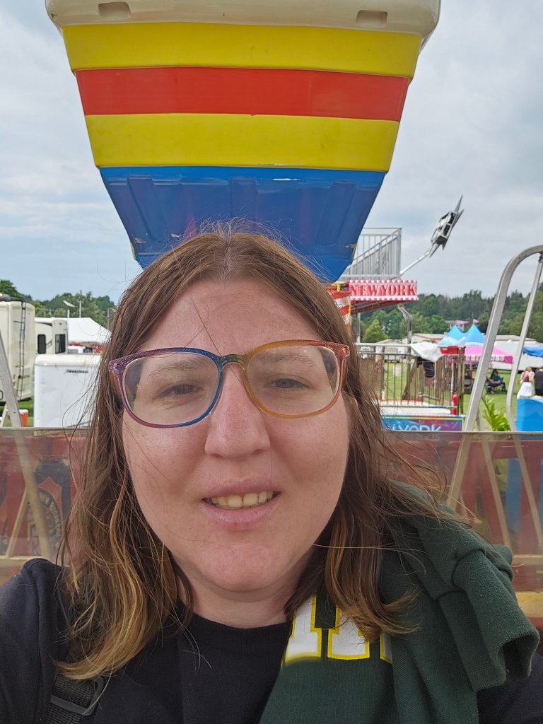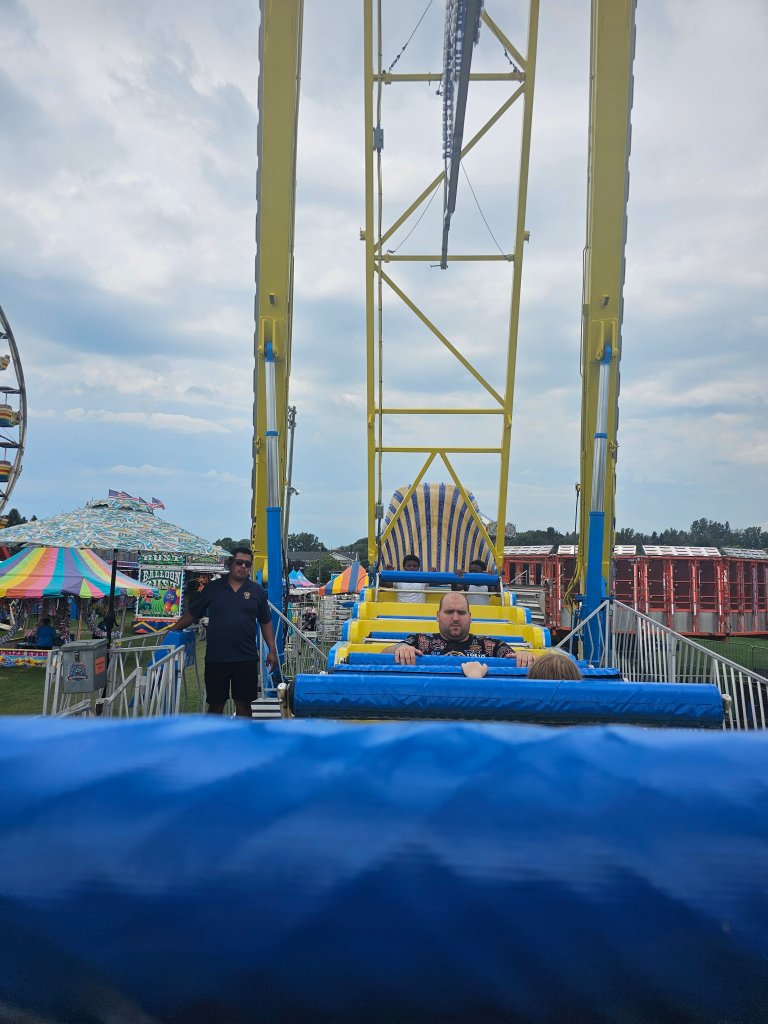 Another thing I did in July when I wasn’t blogging was going to my local fair. I went 2 days; the first day to ride rides all day. We (my brothers and I) got rained out in the morning when we went, but my one brother and I went back when the rain stopped. The youngest 2 didn’t want to go back, so they stayed home. While there, I bought a frozen cheesecake on a stick, a steak, and rice bowl, which I shared with my brothers and fried dough, which I tried not to share.